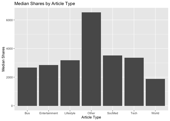 labs(x="Article Type", y="Median Shares", title="Median Shares by Article Type")